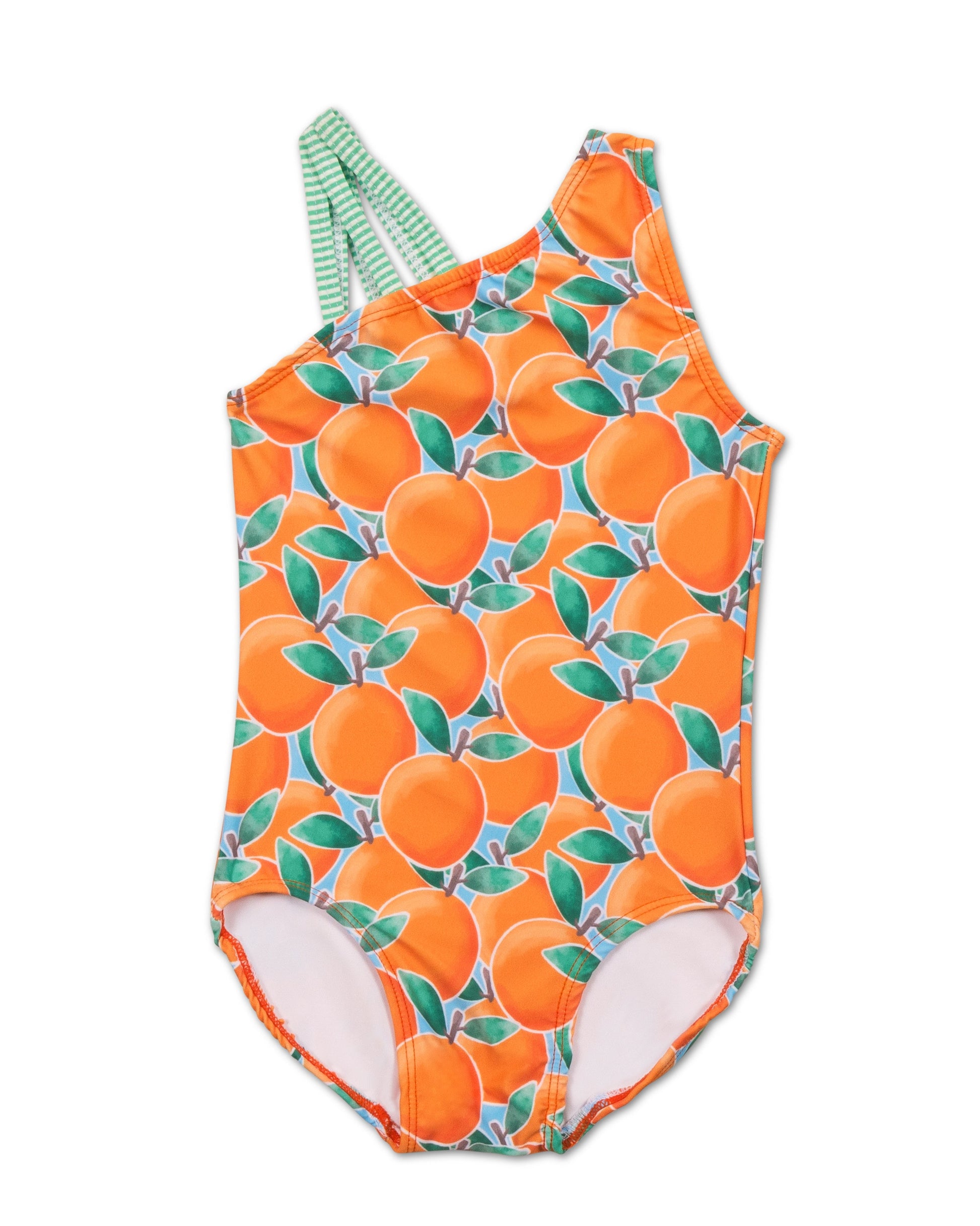 Your little one will put the cute in this Cuties Collection! This girl one piece comes in our cuties print and a fun strappy shoulder moment! As always all our suits are made with UPF 50+ fabric and made in the USA!